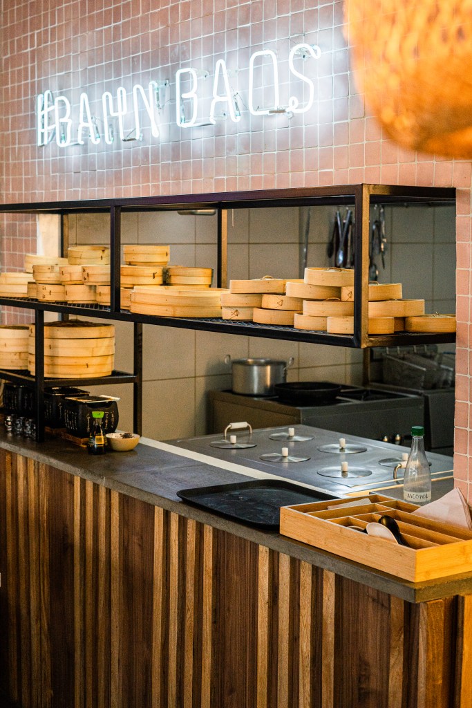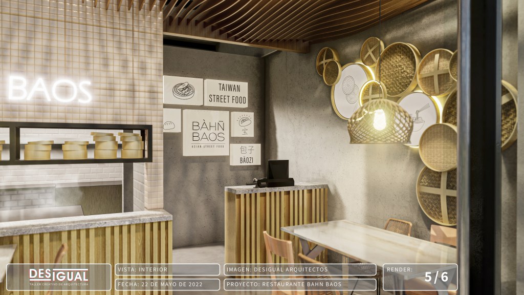 Nos esforzamos por crear un espacio que no solo refleje la esencia y la autenticidad de la gastronomía asiática, sino que también ofrezca una experiencia sensorial única para los comensales. Uno de los elementos destacados de nuestro diseño es el cielo raso elaborado en listones de madera que simulan las olas del mar, evocando una sensación de serenidad y armonía con la naturaleza. Esta característica no solo añade un toque de distinción al ambiente, sino que también crea una atmósfera acogedora y relajante que invita a los clientes a disfrutar de su experiencia.